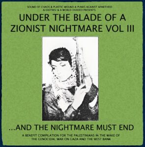 We are proud to announce our collaboration with Plastic Wound Records, Sound of Chaos Records, A World Divided, and East Rev on the UNDER THE BLADE OF A ZIONIST NIGHTMARE series, which we began to support with UNDER THE BLADE OF A ZIONIST NIGHTMARE, VOL. II, raising money for Gaza Sunbirds.